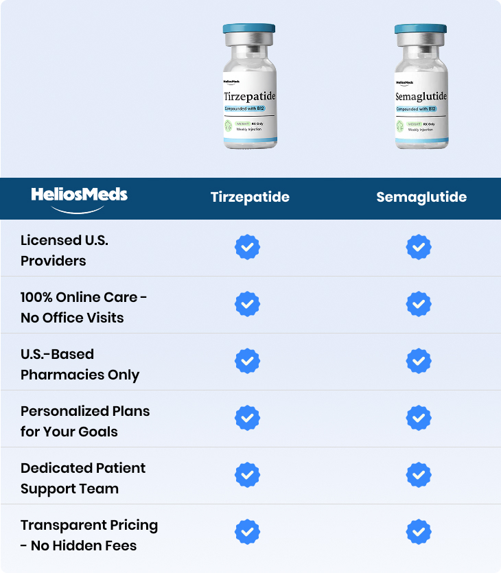 Most “telehealth” weight loss services stop at prescribing medication. Helios goes further - combining proven medication with ongoing medical care, personalized guidance, and support that actually makes a difference.
